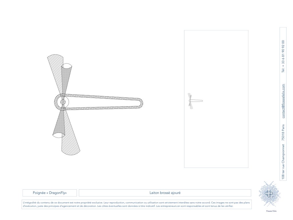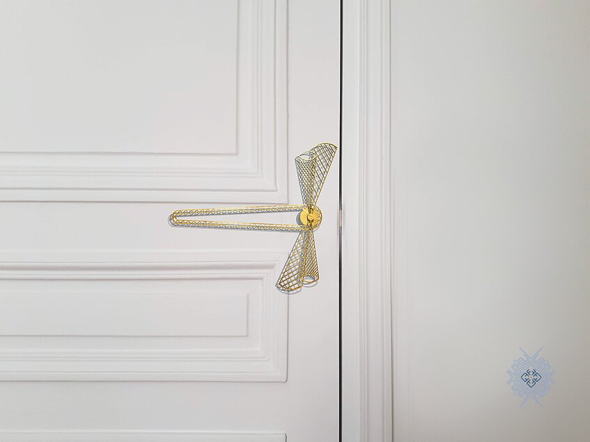 Poignée en laiton ajouré imitant le vol de la libellule.