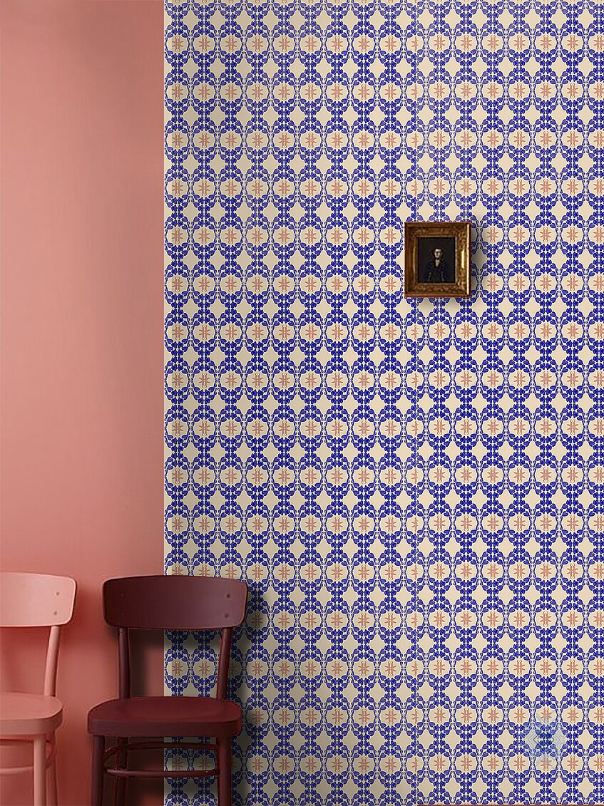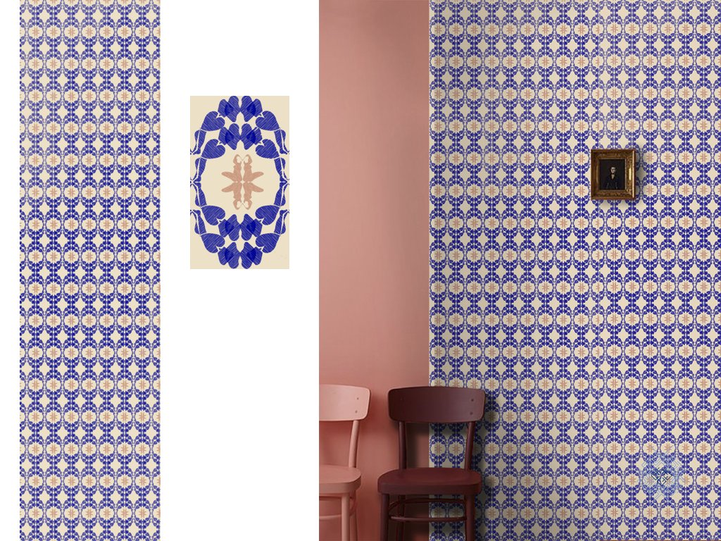 Papier peint à double lecture composé de dessins de femmes nues assemblées en motif floral.