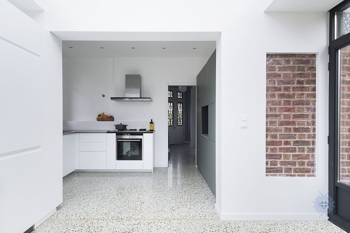 Les propriétaires souhaitaient créer une extension avec vue sur le jardin pour agrandir la zone de préparation de repas d'une part et accueillir un véritable espace pour les dîners en famille en profitant de la vue sur le jardin, été comme hiver. Les parents ayant transmis leur plaisir de cuisiner à leurs trois filles, cette pièce est devenue au fil des ans le coeur du foyer. Un coeur un peu trop étroit où l'espace de circulation et la zone technique exigus ne sont pas à la hauteur des motivations culinaires de ses occupants qui rêvent aussi qu'elle devienne un lieu de vie et d'échanges à part entière.