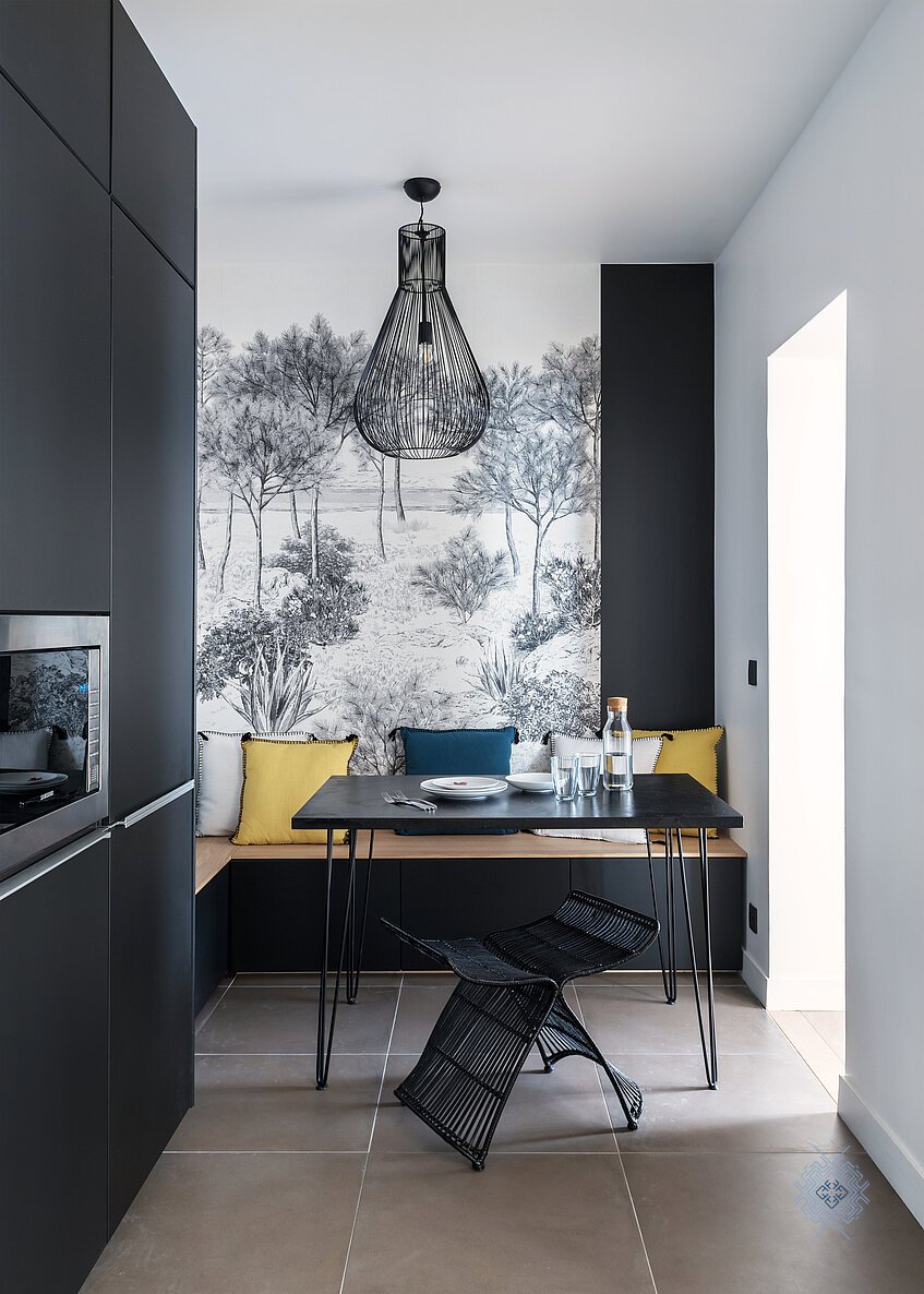 Décoration et aménagement complet pour cet appartement parisien de 90 mètres carrés. La part belle est donnée aux matériaux nobles et aux étoffes de choix. Les pièces de mobilier jouent avec humour et poésie la carte de l'élégance parisienne.
