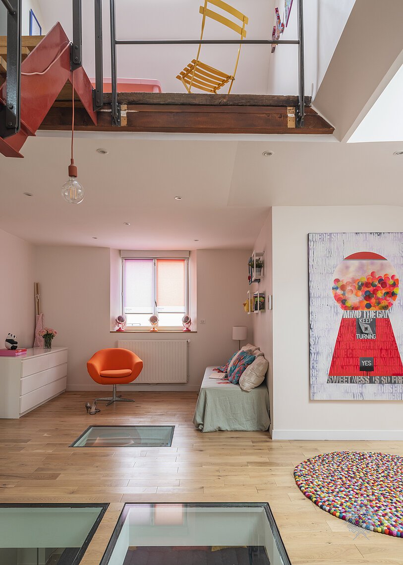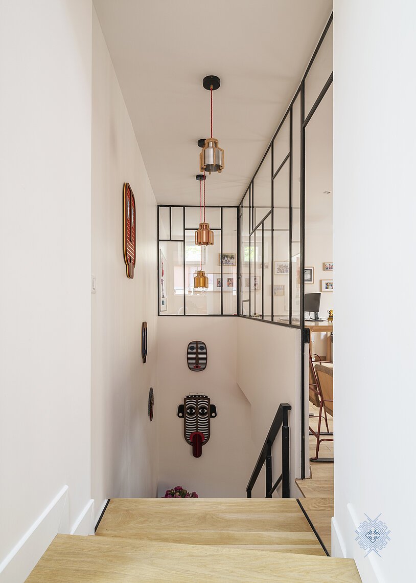 Cet ancien théâtre réunissait trois corps de bâtiments disparates autour d'une cour intérieure. Sa réhabilitation est devenue une vraie mise en scène familiale. Les bâtiments communiquaient sans unité, avec des percements qui mettaient à nu les différences de niveaux de sols et de plafonds. Le premier des défis était d'établir un programme de rénovation redonnant des fonctions claires aux différents espaces très généreux, réorganisant les circulations et en priorité l'emplacement de l'entrée principale de la maison et celle de l'escalier qui dessert trois niveaux tout en redéfinissant les espaces interstitiels entre les chambres des trois filles, la suite parentale et un open space familial! Tout cela en donnant la part belle à la lumière naturelle, grande oubliée de l'histoire jusqu'alors!